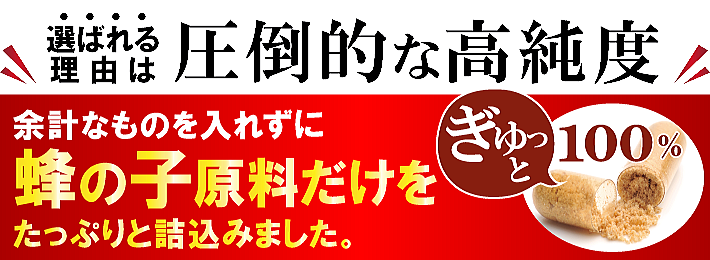 安全な蜂の子のみを、1粒1粒にぎゅっと詰込んでますので、毎日の健康に安心して続けて頂けます。