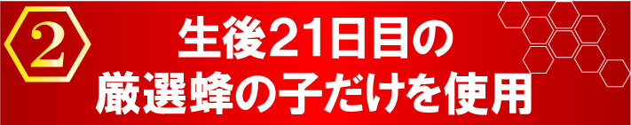 のみを選別して使用しています。産卵後、日数確認をする作業は、熟練した養蜂家によって1日の間違いもなく行われ、最高の栄養状態のものだけを採取しています。