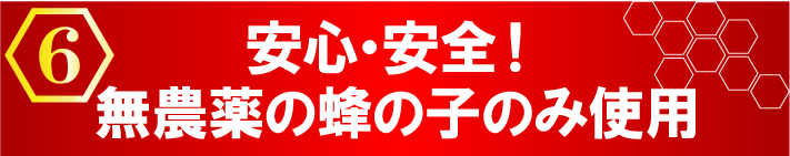 農薬などの抗生物質残留の心配が一切ない、安全な蜂の子のみを厳選して使用しています。