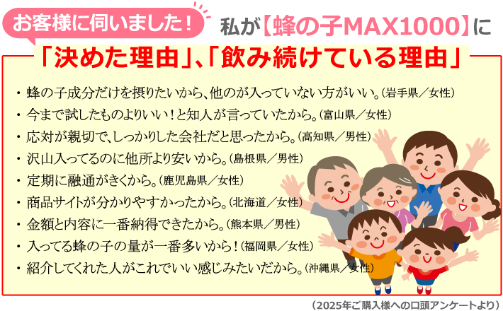 ■続けやすい蜂の子を探して色々と試してみましたが、あいくるねっとさんのが一番でした。紹介してくれたお友達に感謝です。(秋田県/40代女性)
