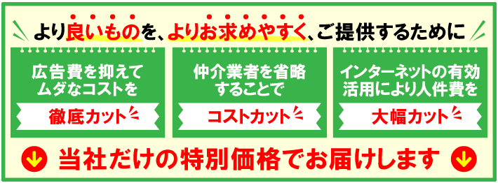 「より良いものを、よりお求め安く」という考えのもとに、多くの皆様にお喜び頂けますよう、驚きの低価格も実現
